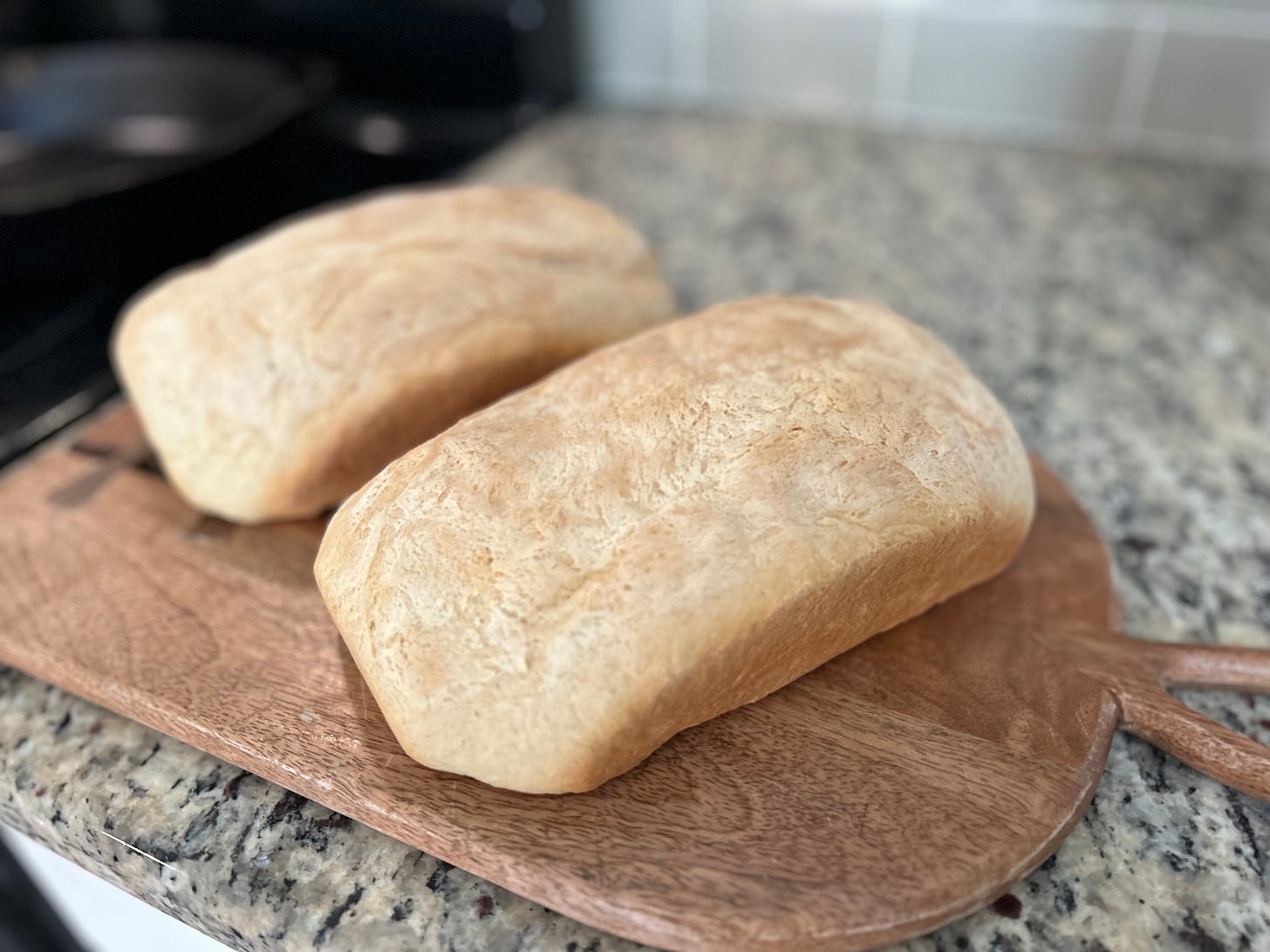 If that wasn’t enough, a couple days later I thought well, hey, let me make some bread! And that took almost as much kneading as the play dough. Another labor-intensive project that seems to keep the kids fed and happy. Nothing fancy, just a couple loaves of white bread.