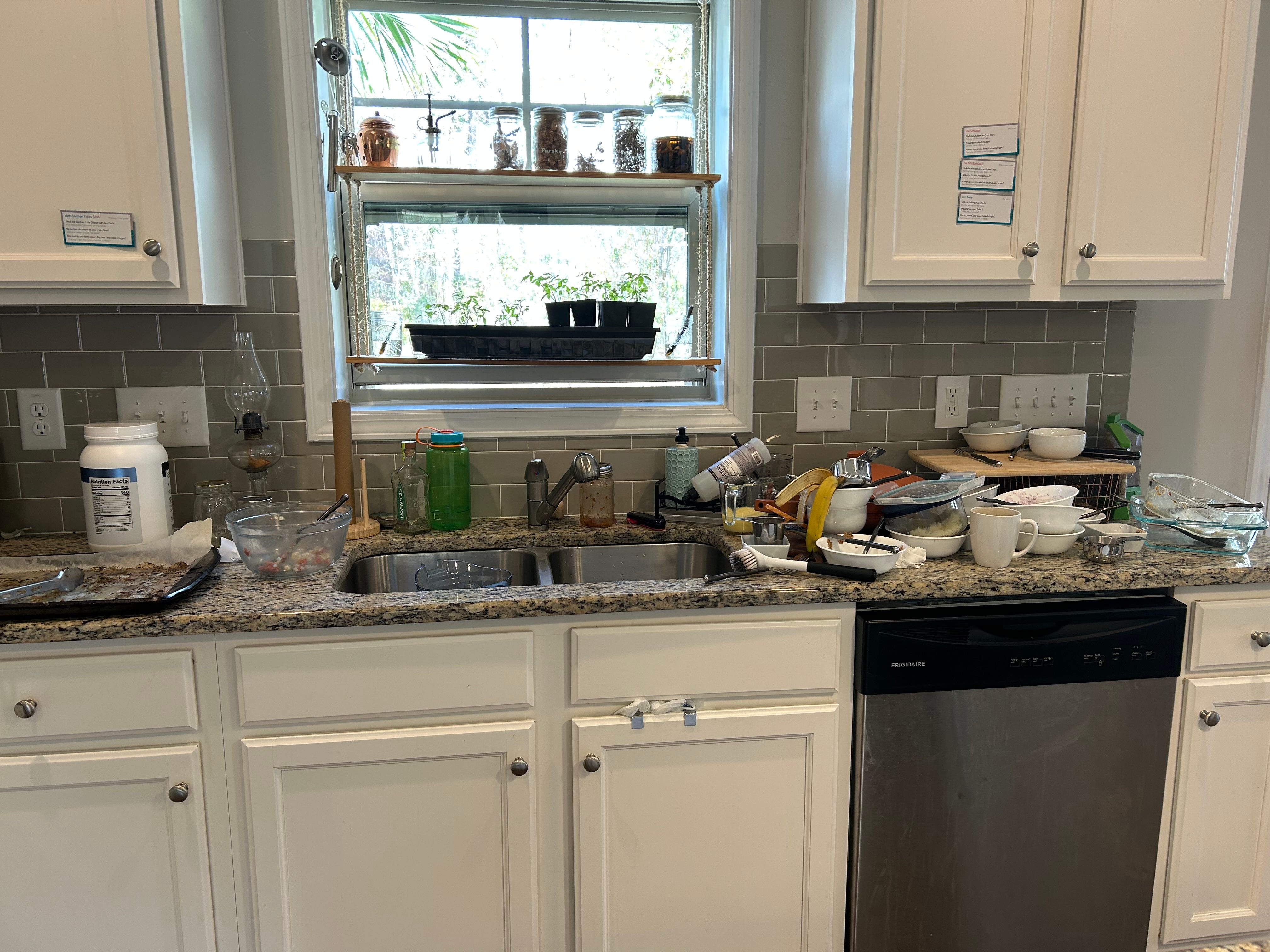 I really despise washing dishes. I’ve said for years: “Give me a garden hose and tell me to water every square inch of the yard by hand and I’d do that over dishes.” I’m baffled that every person manages to use three bowls and utensils each every morning.