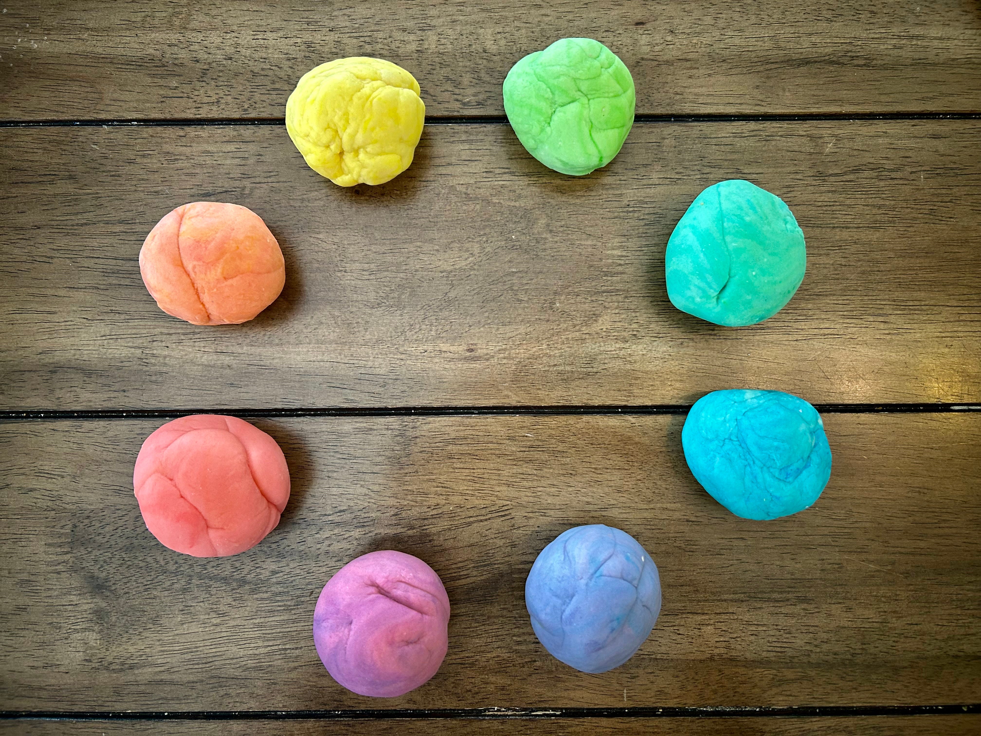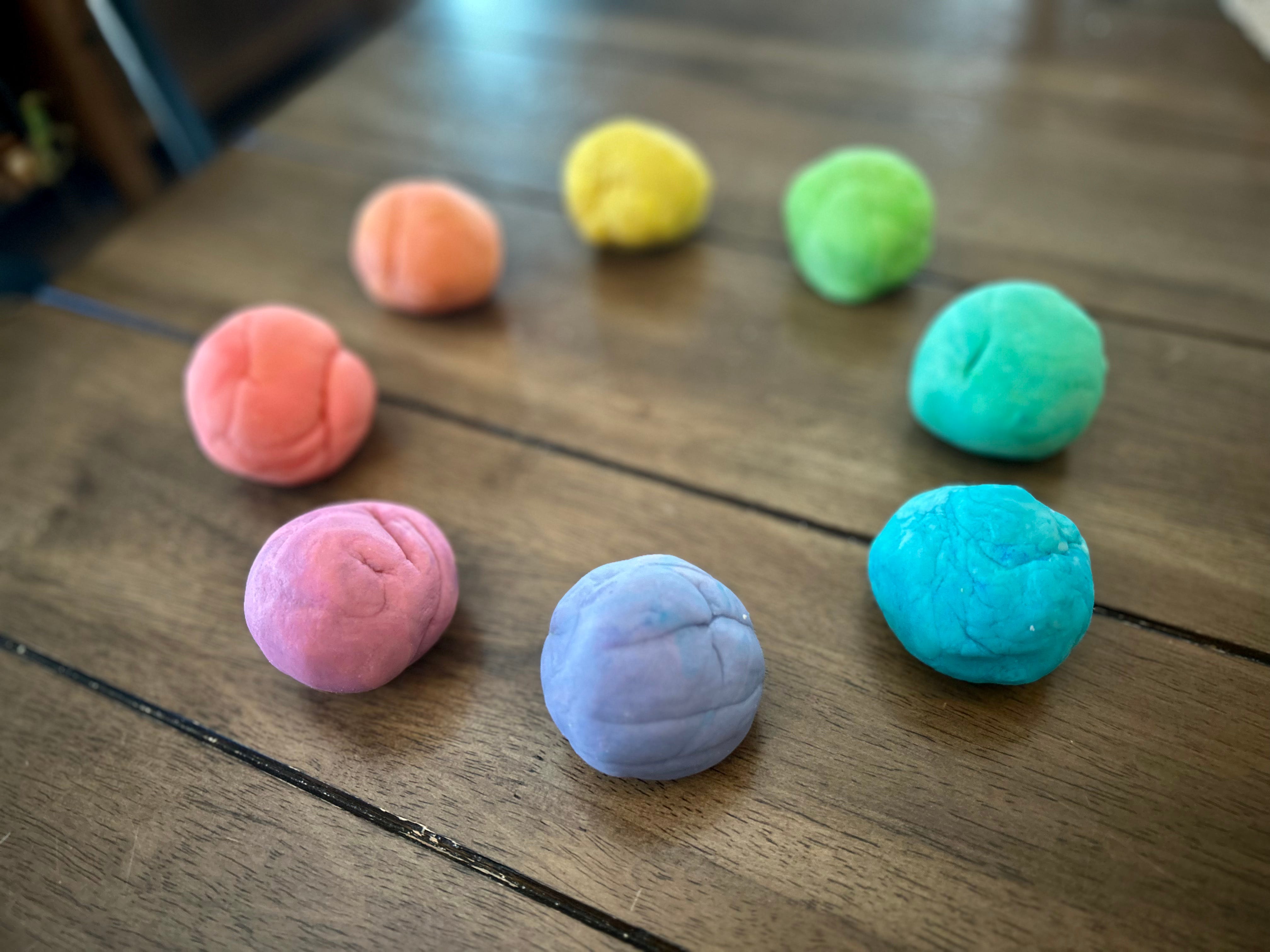 Homemade play dough in a rainbow of colors