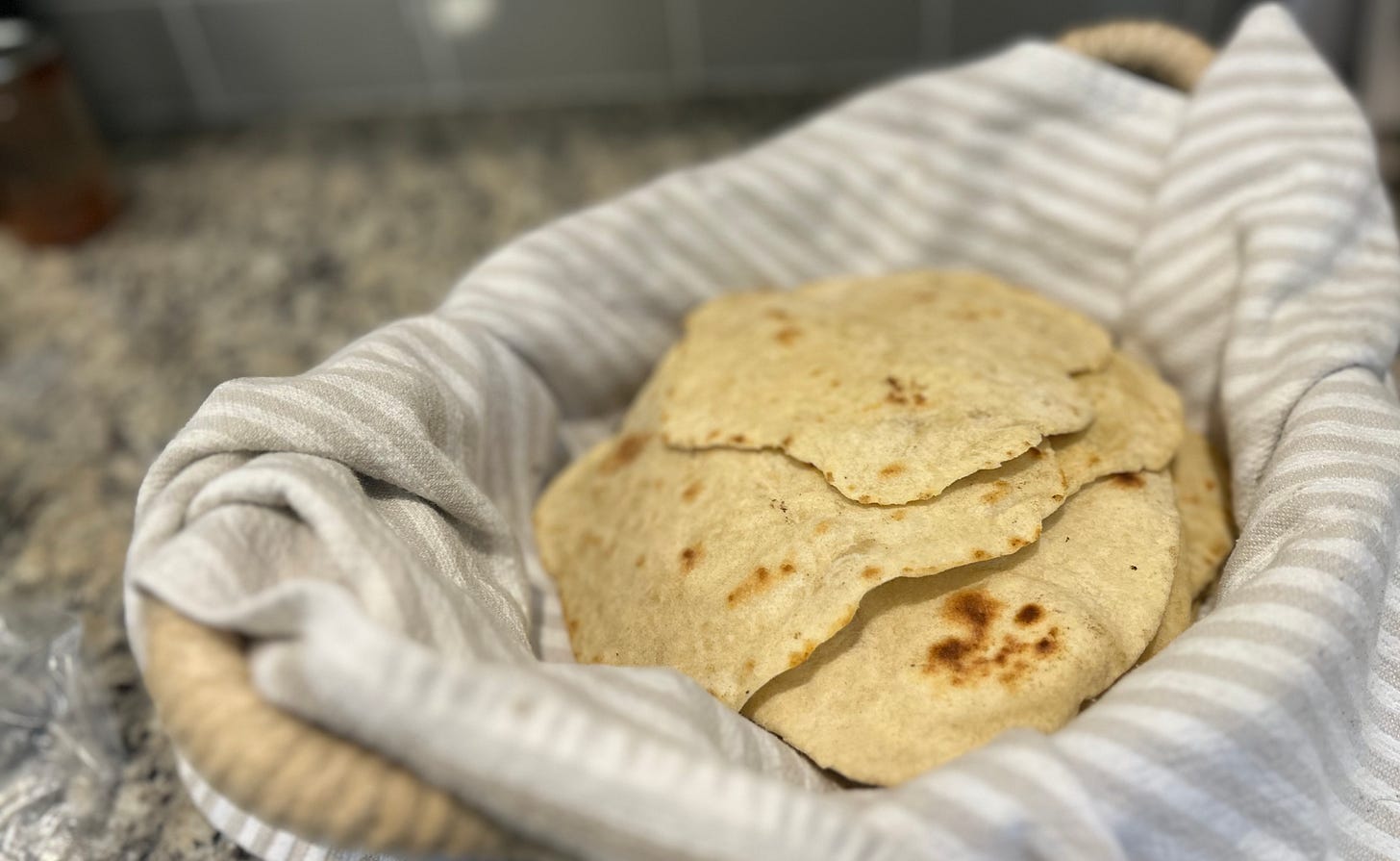 Turns out tortillas are about the easiest thing you can make with flour, and way worth the effort—so much better than store bought. But I learned that next time I will cook them all at once on the Blackstone instead of cooking 16 of them one at a time in a pan. Not even because it was little cumbersome, but because we had the air purifier choking on fumes for a good half hour. You know how a well-greased skillet smokes something fierce when you don’t cover the whole bottom with food.