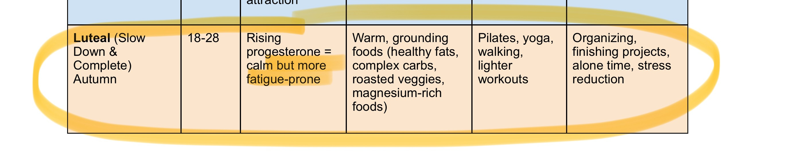 Lo and behold! It’s no wonder I was dragging. By now (and because I use the Natural Cycles app) I know where I’m at in any given cycle—at least I’m supposed to, but apparently I paid no mind as I was meal planning based on having lots of energy the week prior.