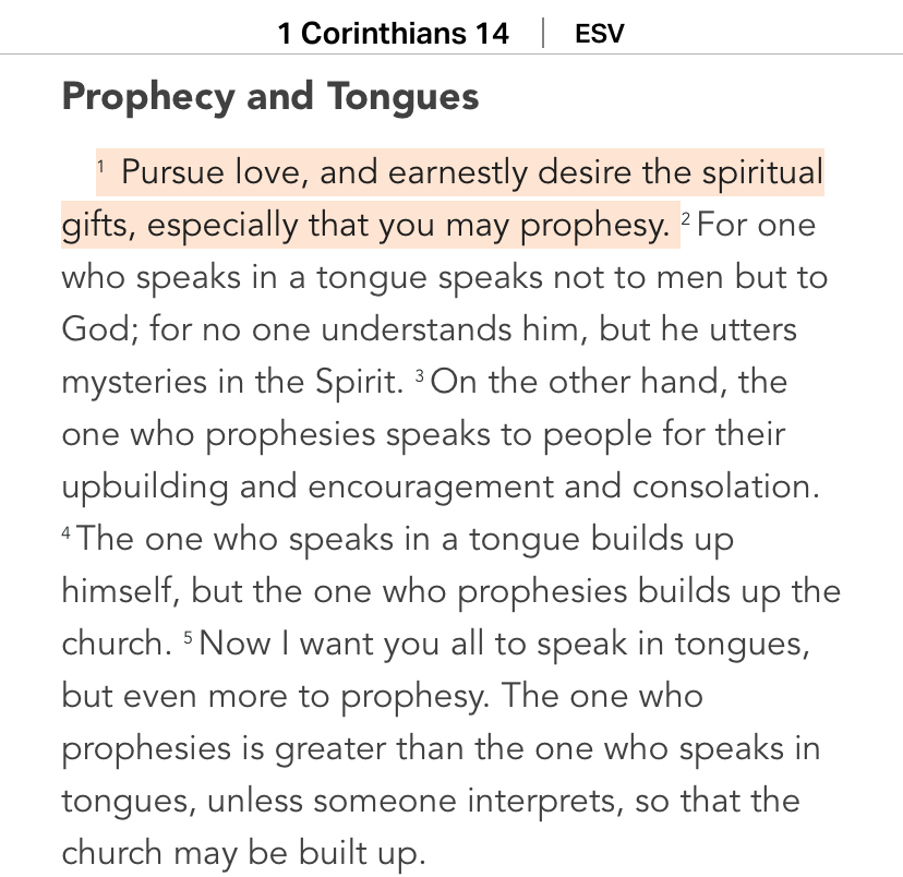 Paul has made his appeal as to why love is of paramount importance in the Christian life, an even more excellent pursuit than spiritual gifts. With this priority still in mind, he proceeds in his exhortation on the gifts. In light of sacrificial love, and to that end, YES!—earnestly desire the gifts of the Spirit. Let’s break it down verse by verse.
