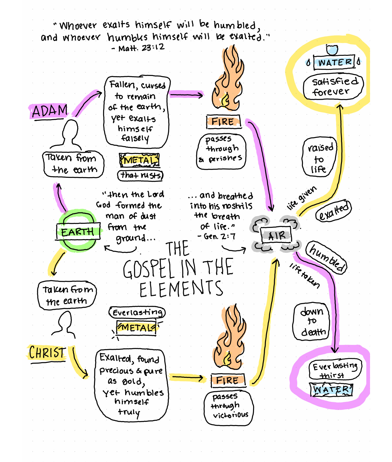 So Christ was drawn from the earth and refined as precious metals in the fire. And none of that is to say that he ever had impurities in the first place. It only speaks metaphorically to his humanity and identification with us. Jesus was God walking on earth as a man. Man comes from the dirt. But men who are transfigured into the kingdom of heaven are precious metals. Christ was both of the earth and of the heavens at the same time. And such is the man who is in Christ. He is declared refined, precious and pure in heaven even while he is still practically being refined here on the earth. (Justification vs. sanctification.)
